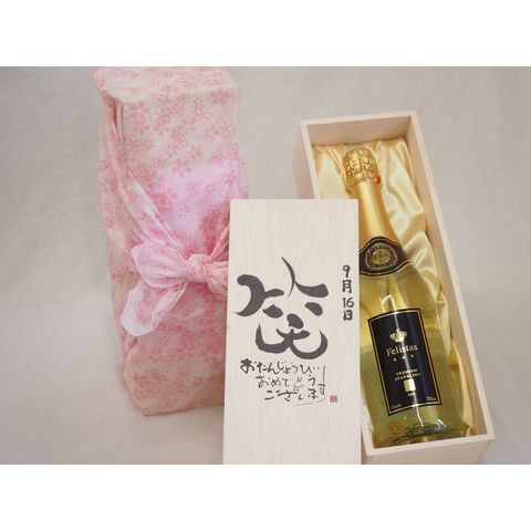 誕生日9月16日セット おたんじょうびおめでとうございます 笑う門には福来たるフェリスタス24カラット金箔入りスパークワイン(ドイツ)750ml デザイン書道家 榮田 清峰作