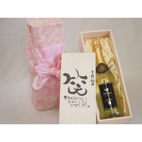 誕生日9月26日セット おたんじょうびおめでとうございます 笑う門には福来たるフェリスタス24カラット金箔入りスパークワイン(ドイツ)750ml デザイン書道家 榮田 清峰作