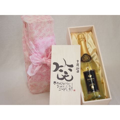 誕生日9月29日セット おたんじょうびおめでとうございます 笑う門には福来たるフェリスタス24カラット金箔入りスパークワイン(ドイツ)750ml デザイン書道家 榮田 清峰作