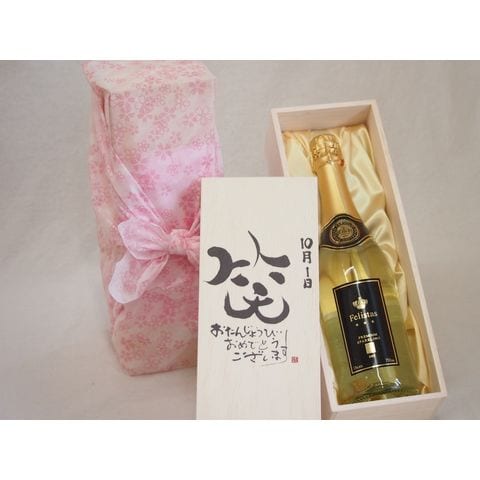 誕生日10月1日セット おたんじょうびおめでとうございます 笑う門には福来たるフェリスタス24カラット金箔入りスパークワイン(ドイツ)750ml デザイン書道家 榮田 清峰作