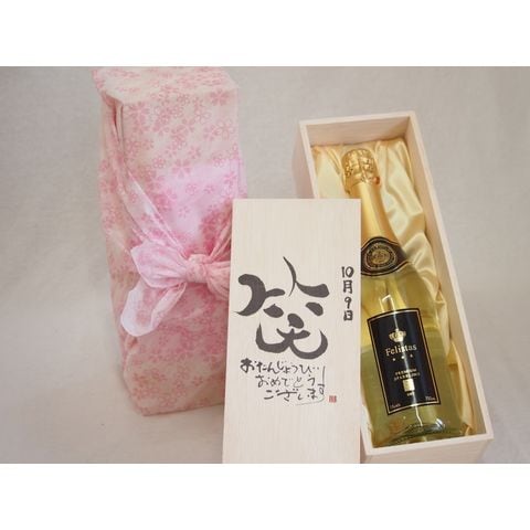 誕生日10月9日セット おたんじょうびおめでとうございます 笑う門には福来たるフェリスタス24カラット金箔入りスパークワイン(ドイツ)750ml デザイン書道家 榮田 清峰作
