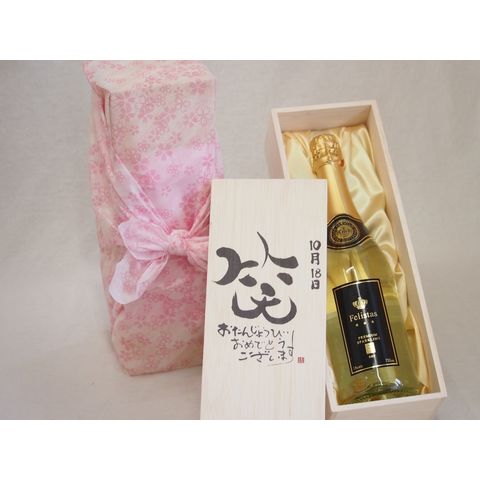 誕生日10月18日セット おたんじょうびおめでとうございます 笑う門には福来たるフェリスタス24カラット金箔入りスパークワイン(ドイツ)750ml デザイン書道家 榮田 清峰作
