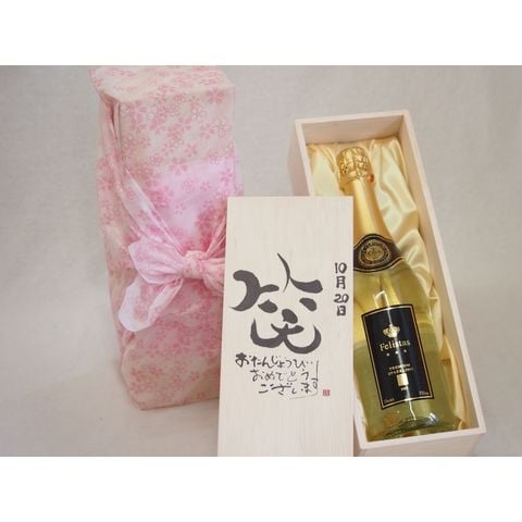 誕生日10月20日セット おたんじょうびおめでとうございます 笑う門には福来たるフェリスタス24カラット金箔入りスパークワイン(ドイツ)750ml デザイン書道家 榮田 清峰作