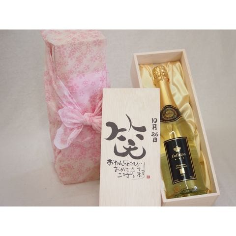 誕生日10月26日セット おたんじょうびおめでとうございます 笑う門には福来たるフェリスタス24カラット金箔入りスパークワイン(ドイツ)750ml デザイン書道家 榮田 清峰作