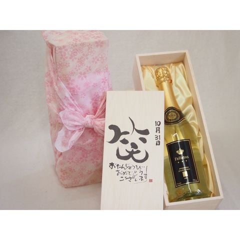 誕生日10月31日セット おたんじょうびおめでとうございます 笑う門には福来たるフェリスタス24カラット金箔入りスパークワイン(ドイツ)750ml デザイン書道家 榮田 清峰作