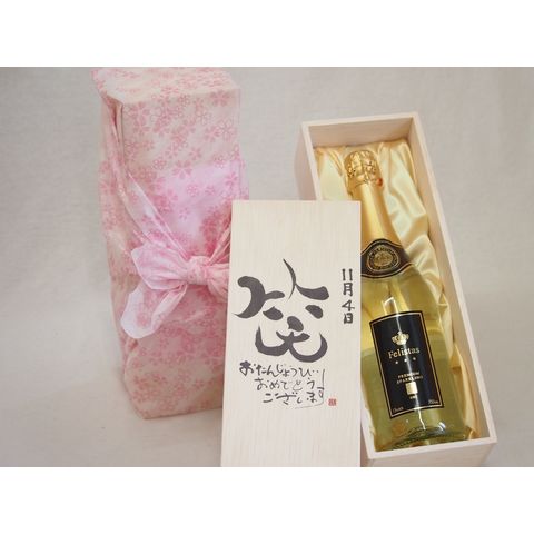 誕生日11月4日セット おたんじょうびおめでとうございます 笑う門には福来たるフェリスタス24カラット金箔入りスパークワイン(ドイツ)750ml デザイン書道家 榮田 清峰作