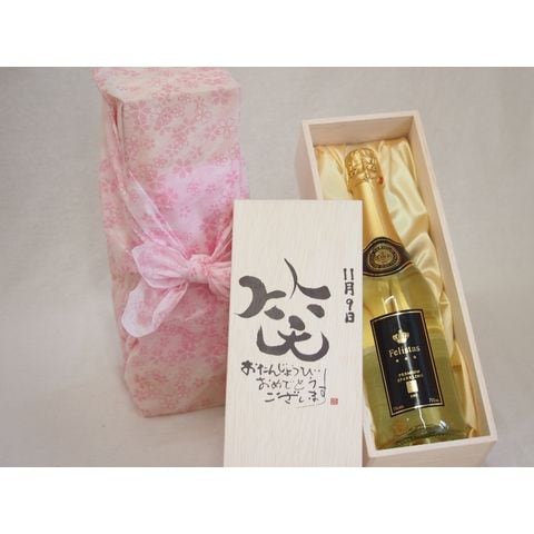 誕生日11月9日セット おたんじょうびおめでとうございます 笑う門には福来たるフェリスタス24カラット金箔入りスパークワイン(ドイツ)750ml デザイン書道家 榮田 清峰作
