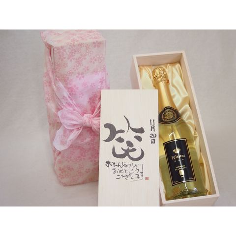 誕生日11月20日セット おたんじょうびおめでとうございます 笑う門には福来たるフェリスタス24カラット金箔入りスパークワイン(ドイツ)750ml デザイン書道家 榮田 清峰作