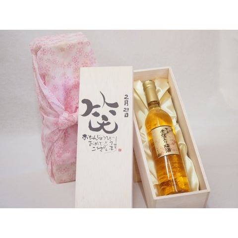 誕生日2月29日セット おたんじょうびおめでとうございます 笑う門には福来たる国産梅万上金箔入り梅酒500ml デザイン書道家 榮田 清峰作
