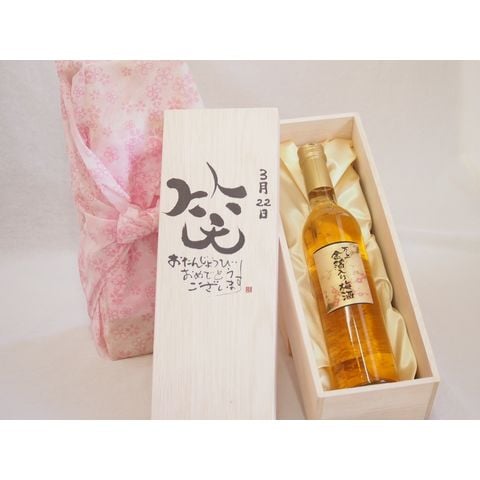 誕生日3月22日セット おたんじょうびおめでとうございます 笑う門には福来たる国産梅万上金箔入り梅酒500ml デザイン書道家 榮田 清峰作