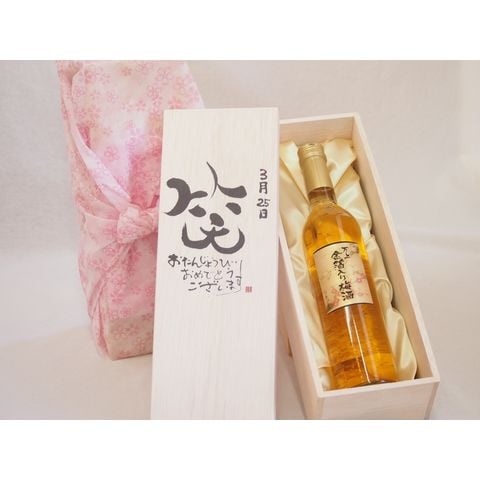 誕生日3月25日セット おたんじょうびおめでとうございます 笑う門には福来たる国産梅万上金箔入り梅酒500ml デザイン書道家 榮田 清峰作
