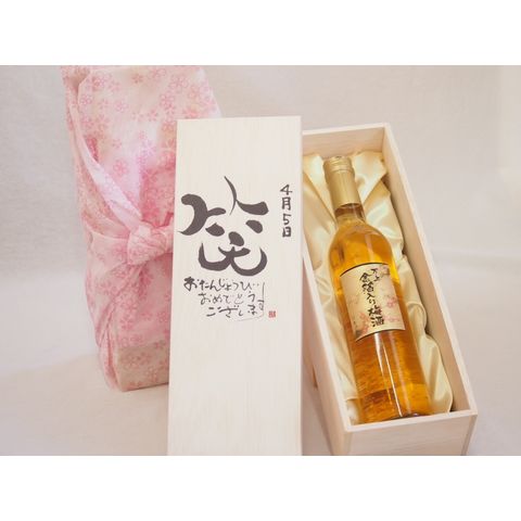 誕生日4月5日セット おたんじょうびおめでとうございます 笑う門には福来たる国産梅万上金箔入り梅酒500ml デザイン書道家 榮田 清峰作
