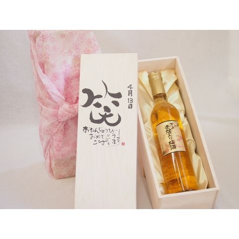誕生日4月13日セット おたんじょうびおめでとうございます 笑う門には福来たる国産梅万上金箔入り梅酒500ml デザイン書道家 榮田 清峰作