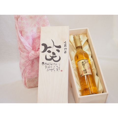 誕生日4月17日セット おたんじょうびおめでとうございます 笑う門には福来たる国産梅万上金箔入り梅酒500ml デザイン書道家 榮田 清峰作