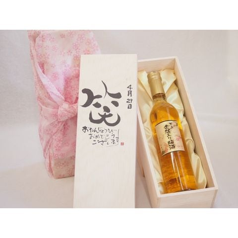 誕生日4月29日セット おたんじょうびおめでとうございます 笑う門には福来たる国産梅万上金箔入り梅酒500ml デザイン書道家 榮田 清峰作