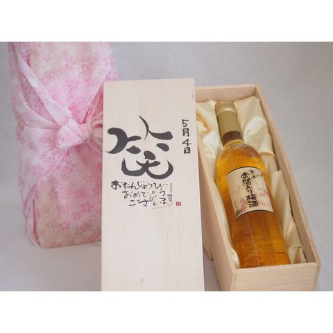 誕生日5月4日セット おたんじょうびおめでとうございます 笑う門には福来たる国産梅万上金箔入り梅酒500ml デザイン書道家 榮田 清峰作