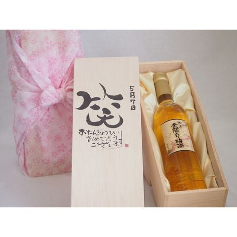 誕生日5月7日セット おたんじょうびおめでとうございます 笑う門には福来たる国産梅万上金箔入り梅酒500ml デザイン書道家 榮田 清峰作