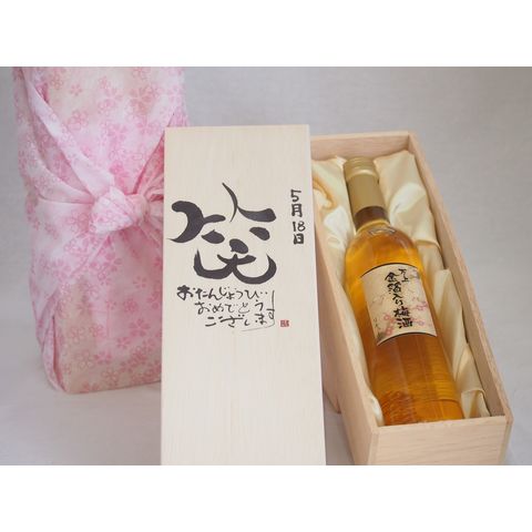 誕生日5月18日セット おたんじょうびおめでとうございます 笑う門には福来たる国産梅万上金箔入り梅酒500ml デザイン書道家 榮田 清峰作