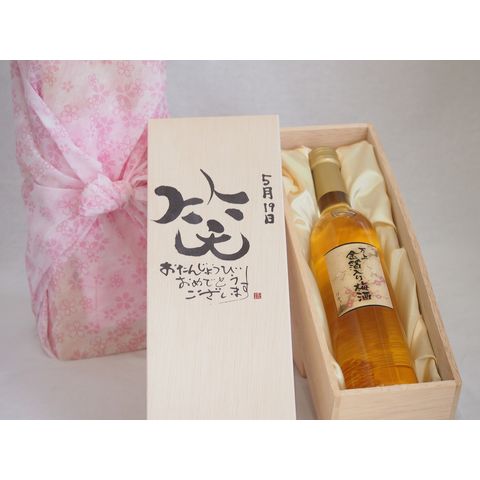 誕生日5月19日セット おたんじょうびおめでとうございます 笑う門には福来たる国産梅万上金箔入り梅酒500ml デザイン書道家 榮田 清峰作