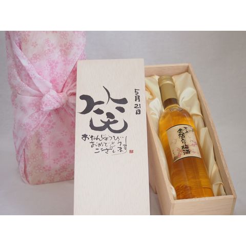 誕生日5月21日セット おたんじょうびおめでとうございます 笑う門には福来たる国産梅万上金箔入り梅酒500ml デザイン書道家 榮田 清峰作