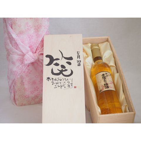 誕生日5月30日セット おたんじょうびおめでとうございます 笑う門には福来たる国産梅万上金箔入り梅酒500ml デザイン書道家 榮田 清峰作