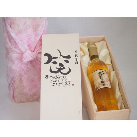 誕生日6月9日セット おたんじょうびおめでとうございます 笑う門には福来たる国産梅万上金箔入り梅酒500ml デザイン書道家 榮田 清峰作