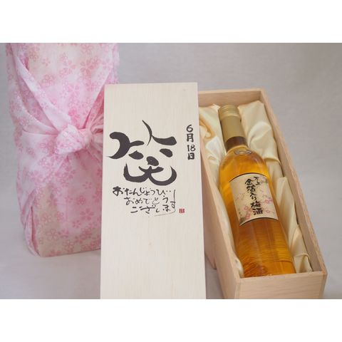 誕生日6月18日セット おたんじょうびおめでとうございます 笑う門には福来たる国産梅万上金箔入り梅酒500ml デザイン書道家 榮田 清峰作