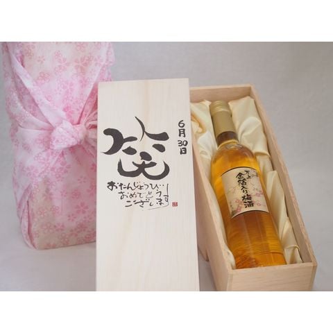 誕生日6月30日セット おたんじょうびおめでとうございます 笑う門には福来たる国産梅万上金箔入り梅酒500ml デザイン書道家 榮田 清峰作