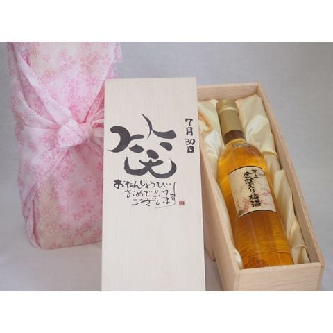 誕生日7月30日セット おたんじょうびおめでとうございます 笑う門には福来たる国産梅万上金箔入り梅酒500ml デザイン書道家 榮田 清峰作