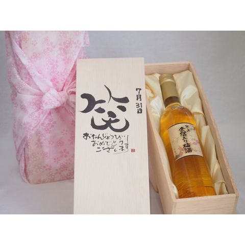 誕生日7月31日セット おたんじょうびおめでとうございます 笑う門には福来たる国産梅万上金箔入り梅酒500ml デザイン書道家 榮田 清峰作