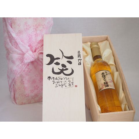 誕生日8月17日セット おたんじょうびおめでとうございます 笑う門には福来たる国産梅万上金箔入り梅酒500ml デザイン書道家 榮田 清峰作