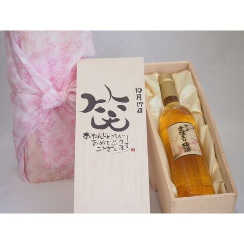 誕生日10月17日セット おたんじょうびおめでとうございます 笑う門には福来たる国産梅万上金箔入り梅酒500ml デザイン書道家 榮田 清峰作