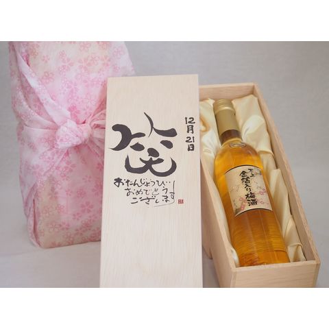 誕生日11月21日セット おたんじょうびおめでとうございます 笑う門には福来たる国産梅万上金箔入り梅酒500ml デザイン書道家 榮田 清峰作