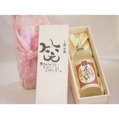 誕生日1月4日セット おたんじょうびおめでとうございます 笑う門には福来たる プレミアムな熟成麦焼酎 夢のひととき(大分県)25度720ml デザイン書道家 榮田 清峰作