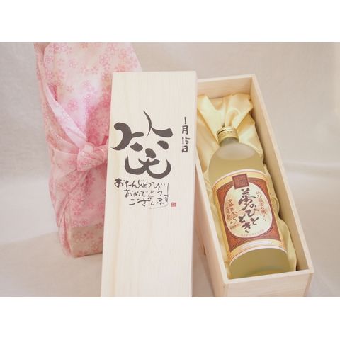 誕生日1月15日セット おたんじょうびおめでとうございます 笑う門には福来たる プレミアムな熟成麦焼酎 夢のひととき(大分県)25度720ml デザイン書道家 榮田 清峰作
