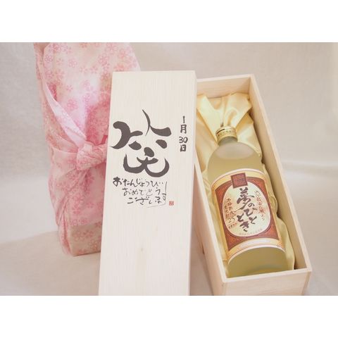 誕生日1月30日セット おたんじょうびおめでとうございます 笑う門には福来たる プレミアムな熟成麦焼酎 夢のひととき(大分県)25度720ml デザイン書道家 榮田 清峰作