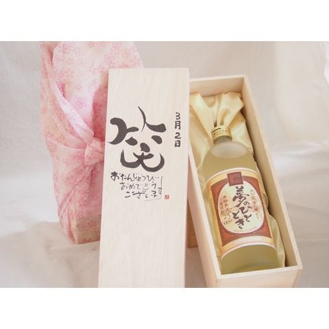 誕生日3月2日セット おたんじょうびおめでとうございます 笑う門には福来たる プレミアムな熟成麦焼酎 夢のひととき(大分県)25度720ml デザイン書道家 榮田 清峰作
