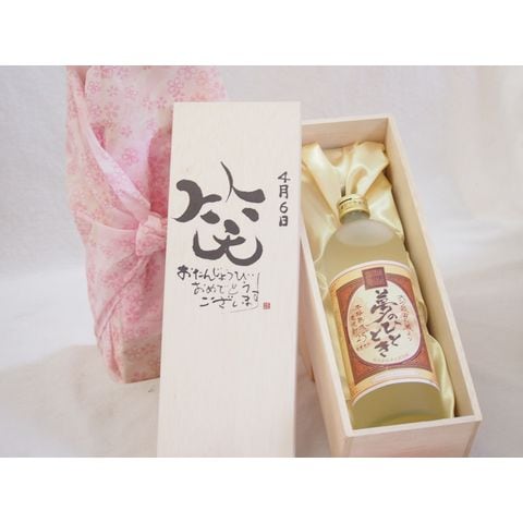 誕生日4月6日セット おたんじょうびおめでとうございます 笑う門には福来たる プレミアムな熟成麦焼酎 夢のひととき(大分県)25度720ml デザイン書道家 榮田 清峰作