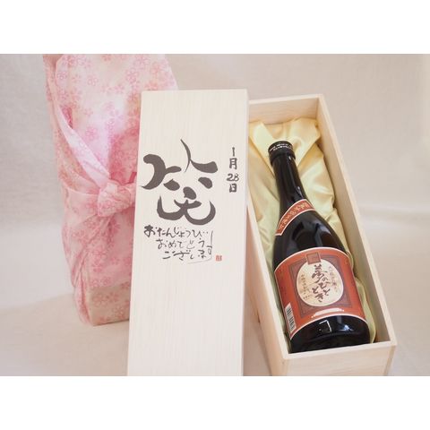 誕生日1月28日セット おたんじょうびおめでとうございます 笑う門には福来たる プレミアムな国産芋焼酎 夢のひととき(大分県)23度720ml デザイン書道家 榮田 清峰作