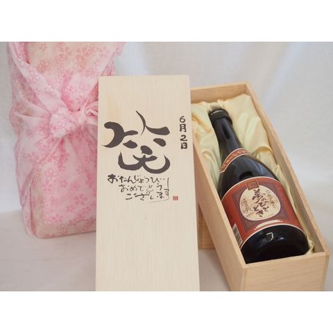 誕生日6月2日セット おたんじょうびおめでとうございます 笑う門には福来たる プレミアムな国産芋焼酎 夢のひととき(大分県)23度720ml デザイン書道家 榮田 清峰作