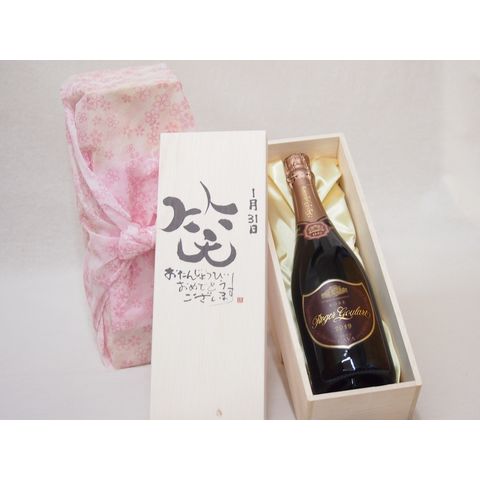 誕生日1月31日セット おたんじょうびおめでとうございます 笑う門には福来たるロジャーグラートロゼ・ブリュットスパークリングワイン辛口(スペイン)750ml デザイン書道家 榮田 清峰作