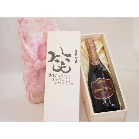 誕生日3月7日セット おたんじょうびおめでとうございます 笑う門には福来たるロジャーグラートロゼ・ブリュットスパークリングワイン辛口(スペイン)750ml デザイン書道家 榮田 清峰作