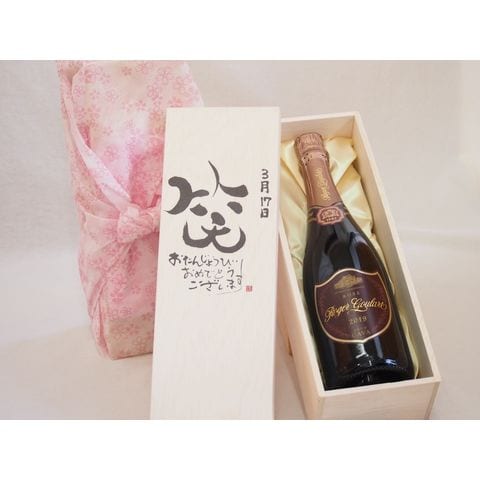 誕生日3月17日セット おたんじょうびおめでとうございます 笑う門には福来たるロジャーグラートロゼ・ブリュットスパークリングワイン辛口(スペイン)750ml デザイン書道家 榮田 清峰作