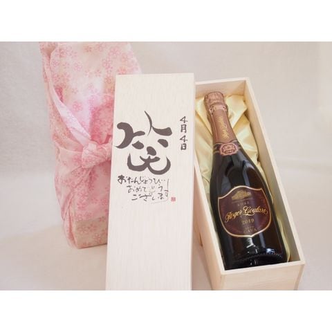 誕生日4月4日セット おたんじょうびおめでとうございます 笑う門には福来たるロジャーグラートロゼ・ブリュットスパークリングワイン辛口(スペイン)750ml デザイン書道家 榮田 清峰作