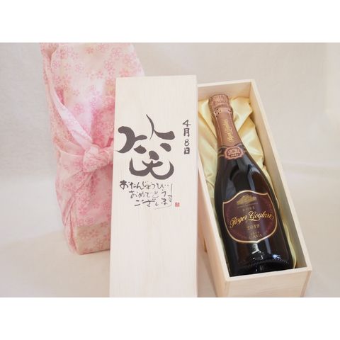 誕生日4月8日セット おたんじょうびおめでとうございます 笑う門には福来たるロジャーグラートロゼ・ブリュットスパークリングワイン辛口(スペイン)750ml デザイン書道家 榮田 清峰作