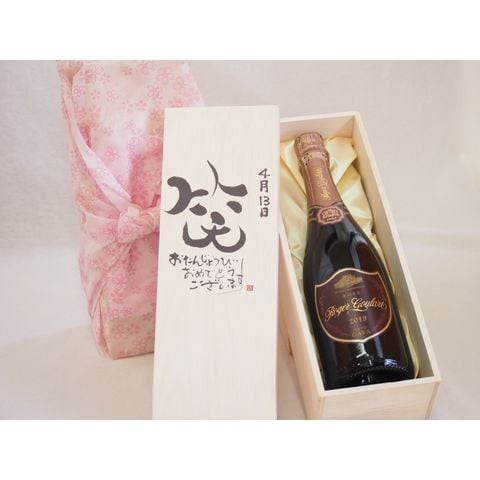 誕生日4月13日セット おたんじょうびおめでとうございます 笑う門には福来たるロジャーグラートロゼ・ブリュットスパークリングワイン辛口(スペイン)750ml デザイン書道家 榮田 清峰作