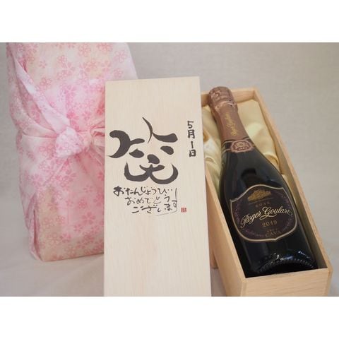 誕生日5月1日セット おたんじょうびおめでとうございます 笑う門には福来たるロジャーグラートロゼ・ブリュットスパークリングワイン辛口(スペイン)750ml デザイン書道家 榮田 清峰作
