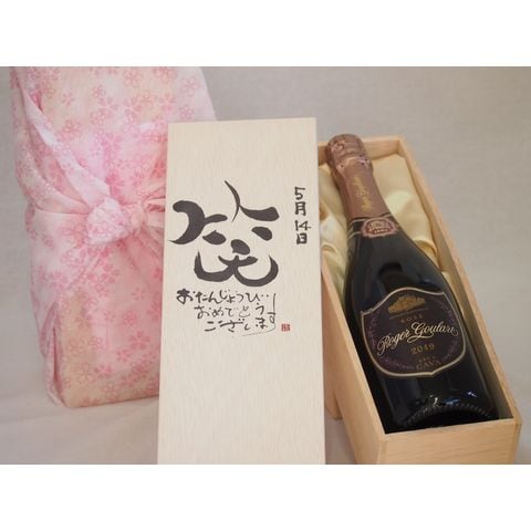 誕生日5月14日セット おたんじょうびおめでとうございます 笑う門には福来たるロジャーグラートロゼ・ブリュットスパークリングワイン辛口(スペイン)750ml デザイン書道家 榮田 清峰作