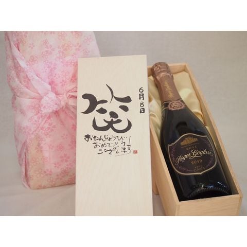 誕生日6月8日セット おたんじょうびおめでとうございます 笑う門には福来たるロジャーグラートロゼ・ブリュットスパークリングワイン辛口(スペイン)750ml デザイン書道家 榮田 清峰作