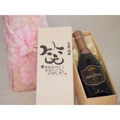 誕生日6月12日セット おたんじょうびおめでとうございます 笑う門には福来たるロジャーグラートロゼ・ブリュットスパークリングワイン辛口(スペイン)750ml デザイン書道家 榮田 清峰作